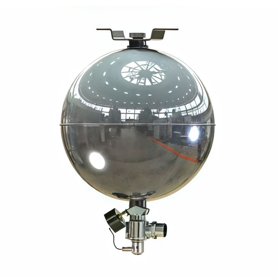 Главный конструктивный элемент – это металлический сосуд сферической формы, внутри которого есть огнетушащее вещество. Сверху у емкости есть металлическое крепление. Основным действующим веществом в модулях газового пожаротушения Импульс являются огнетушащие газы R-125, R-227ea или ФК 5-1-12.